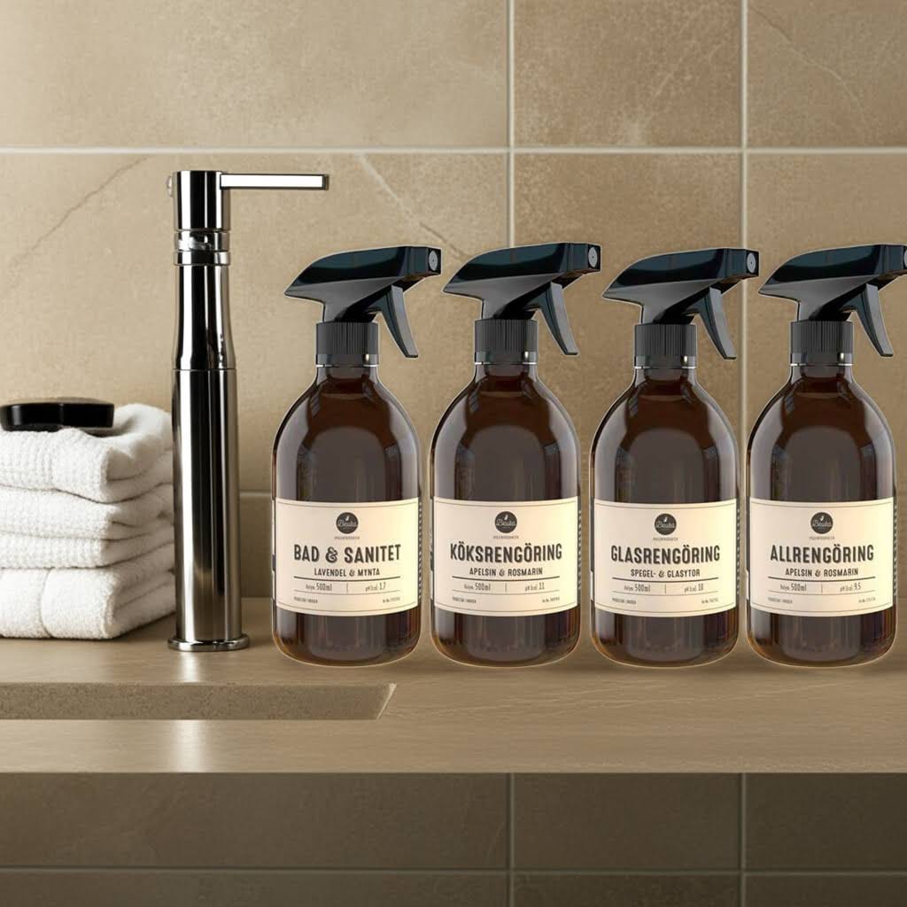 1 st Allrengöring 500 ml, Kan användas för dagligrengöring av målade ytor, glas, plast, speglar, sanitetsgods och rostfritt stål. Allrent ger ett rent och skinande resultat och efterlämnar en frisk doft av apelsin och rosmarin.