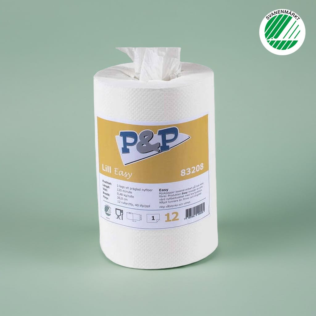120 meter per rulle. 12 rullar per förpackning. Miljömärkt med Svanen